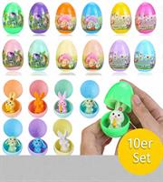 Bunte Ostereier mit versteckter Überraschung. Jedes Osterei enthält eine kleine Hasenfigur, ideal für die Ostereiersuche oder als kleines Geschenk mit Überraschungseffekt. Die Ostereier haben eine Grö...