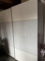 Zu verkaufen Schwebetürenschrank, Weiss, Glas weiss mit Strass von Möbel Hubacher Incl. Schubkasteneinsatz. Masse H 198, B 180, T 64 cm. Preis: 350.- CHF Barzahlung bei Abholung erwünscht. Weitere Inf...